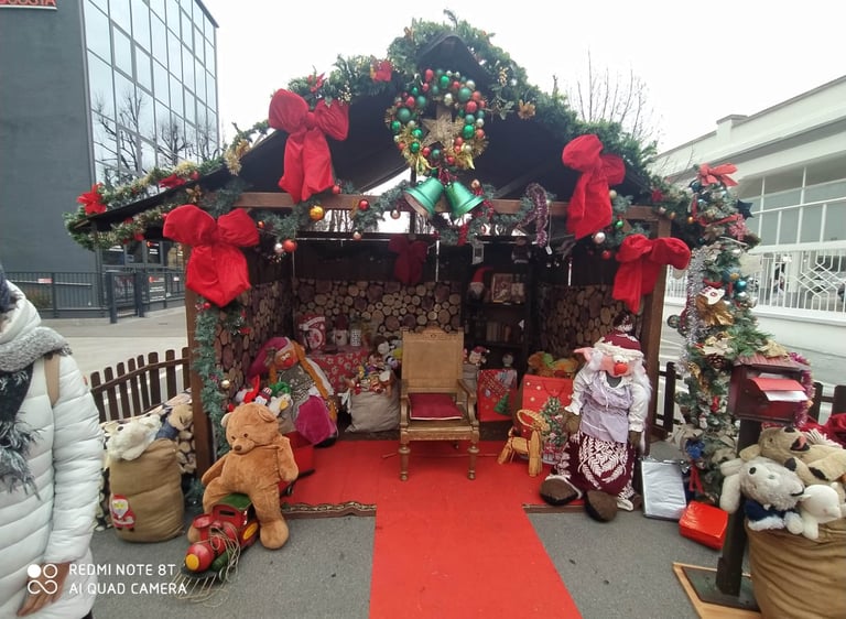 Un allestimento completo che trasforma piazze e location in un villaggio incantato. Babbo Natale, la sua slitta, i folletti e buffi personaggi si alternato in laboratori creativi per bambini e prove per adulti.